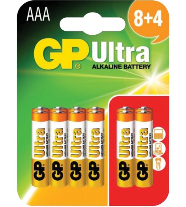GP Ultra Alkaline Batteries AAA 8+4 656.016UK