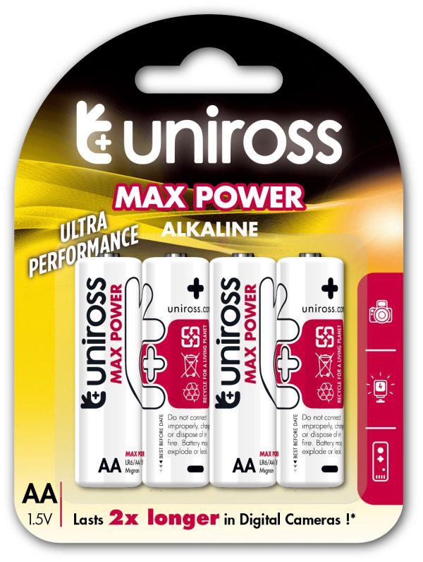 Uniross AA Max Power Alkaline Batteries 4 Pcs