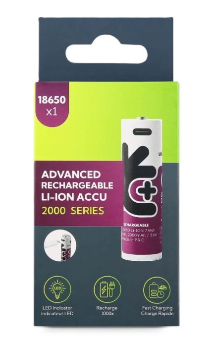 Uniross USB-C Rechargeable 18650 Lithium Battery 2000mah (1pc)