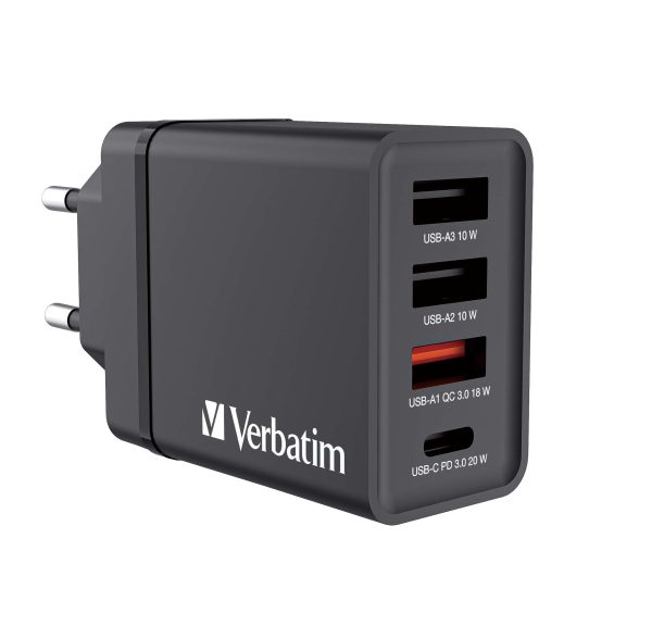 Verbatim Wall Charger 30W EU Plug 1 x USBC20W 3 x USBA CHR-30EU1 Black