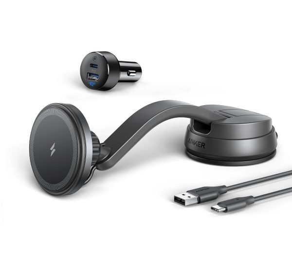 Anker PowerWave Mag-Go Car Wireless Charging Kit with 2-Port Car Charger & USB-C to USB-A 1.5m Cable