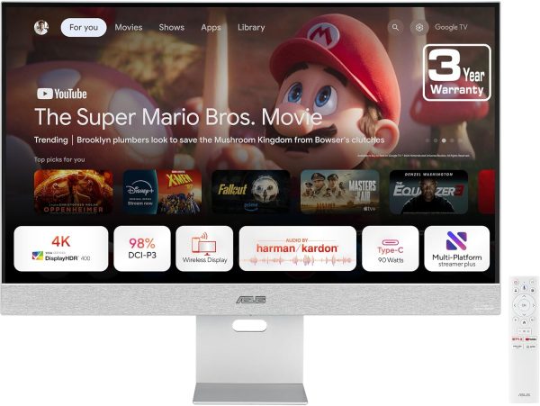 ASUS Monitor Smart 27″ 4K Google TV, Chromecast, Speakers, USB-C/HDMI ZenScreen MS27UC