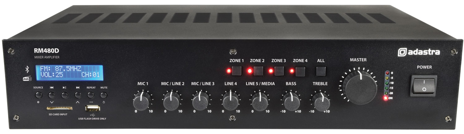 Adastra PA 100V Amplifier RM480D 480W FM/DAB/USB/BT/4Z 953.227UK