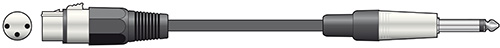 A fully shielded microphone and audio lead for unbalanced signals. Made with a soft-grip, anti-tangle, rubberised jacket; machine-soldered connections; and professional, die-cast XLR female connector and 6.3mm mono jack plug.