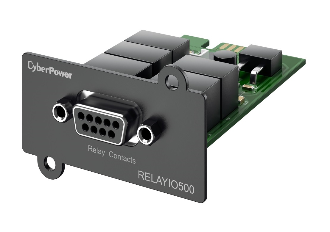 CyberPower RELAYIO500 is an optional management add-on to specific CyberPower UPS series. After inserting the card into the expansion port on the UPS, the card can execute multiple alerts whenever power issues occur, including UPS failures, overloads, over temperature etc. In addition, the card provides one input contact for remote UPS shutdown in battery mode.