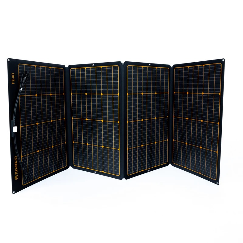The Flexsolar® F240 is a powerful 240W foldable solar panel with efficient monocrystalline cells. Its rugged, waterproof design makes it ideal for camping, travel, or remote work. Easy to carry, set up, and connect via universal MC4 connectors.