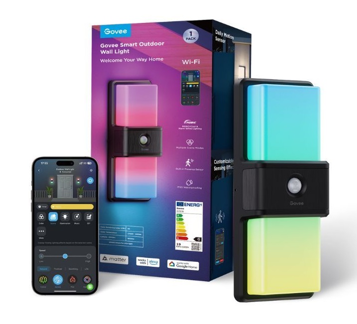 Illuminate your outdoor space with the Govee Smart Outdoor Wall Light, designed for both style and functionality. This smart wall light offers a wide range of colors and scenes to light up every occasion.