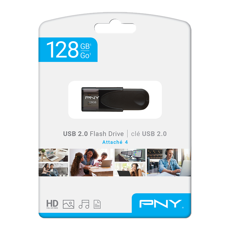 PNY Flash Drive Attache 4 USB 2.0 Stick 128GB Capless Slider Black FD128ATT4