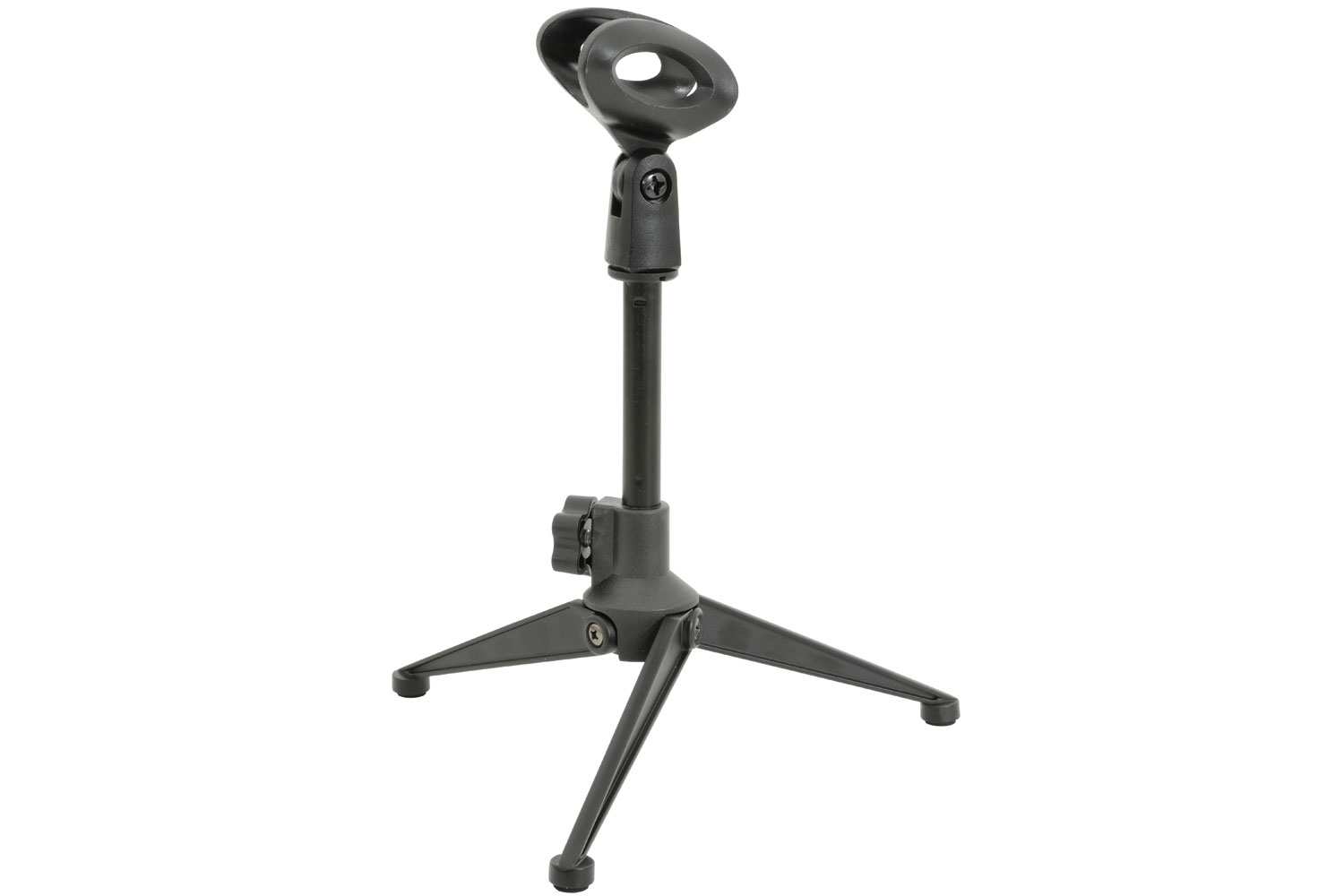 A desktop microphone stand with foldable tripod legs offering easy installation and convenient storage. Ideal for conference and studio use.