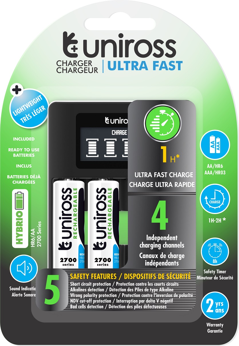 Uniross UCU005A Ultra Fast Charger 1hr for AA/AAA Incl 4xAA 2700 Batteries