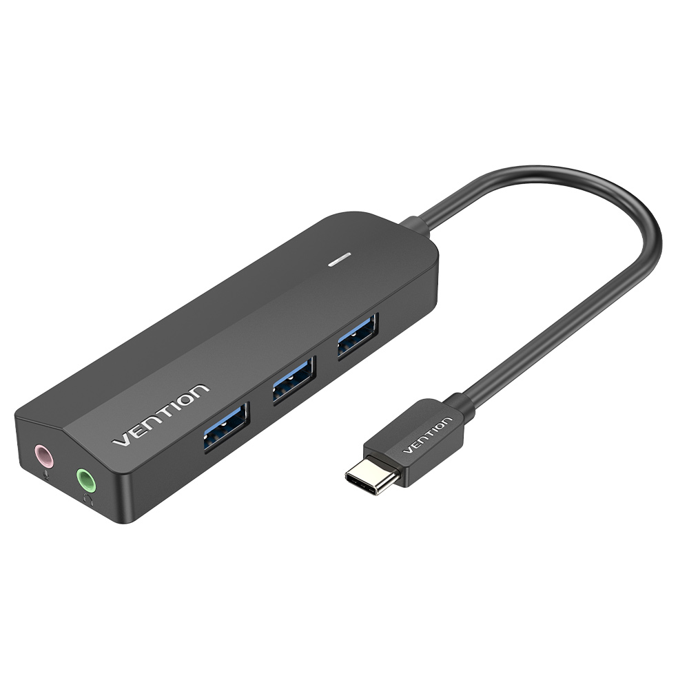 Vention 3-Port USB 3.0 Hub with Sound Card and Power Supply 0.15M Black