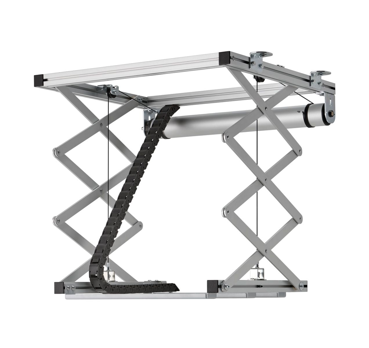 - This lift has been developed to be installed inside a false ceiling where very few space is available. Inside the false ceiling only a minimum height of 15,5 cm is required to install lift and projector. The motor allows a drop of 81,5 cm