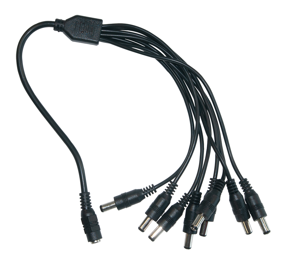 - Power splitter with 1 input (socket) and 8 outputs (plugs)