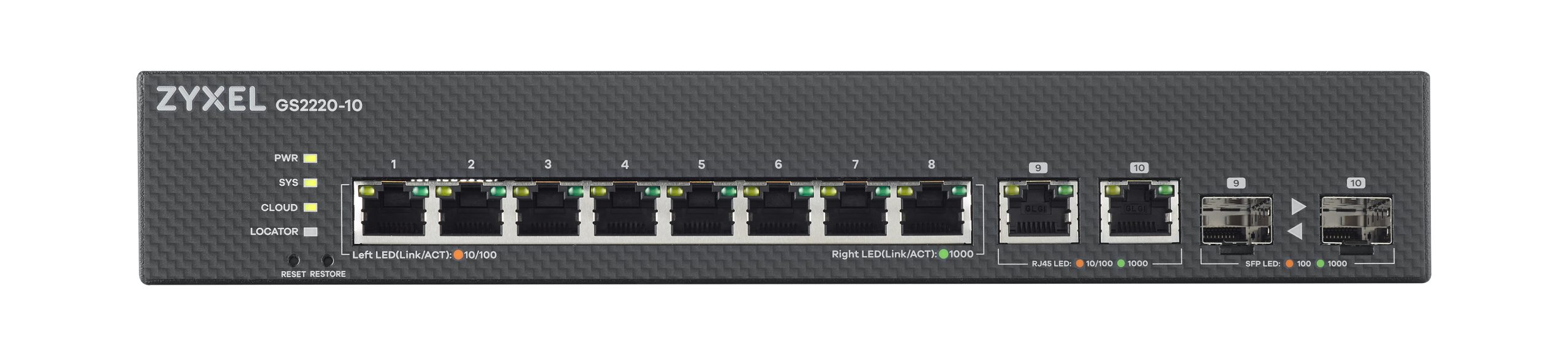 Zyxel Switch Gigabit Ethernet Cloud Managed 8-Port + 2RJ45/SFP Combo GS2220-10